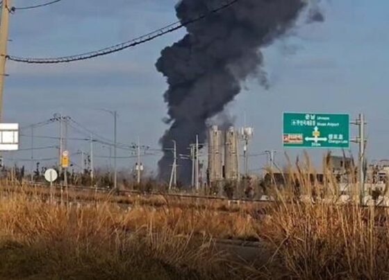 Avião bate e pega fogo em aeroporto na Coreia do Sul