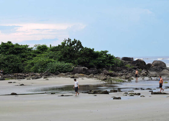 Ao final da trilha o visitante chega à Praia da Saudade, pequena e aconchegante / Nayara Martins/DL Explorar uma trilha…