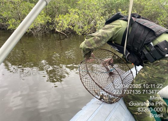 Polícia Ambiental recolhe 14 armadilhas irregulares durante patrulamento em rio de Guaratuba