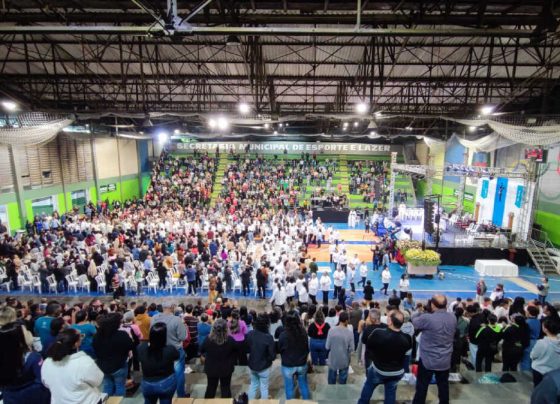 A caminhada terminou no Centro Esportivo Romerão, que se transformou em palco da Missa Solene / Divulgação/PMC Cubatão viveu um…