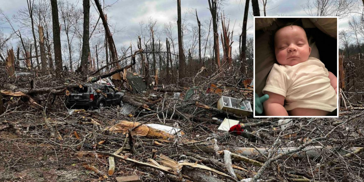 Um bebê de quatro meses sobreviveu a um tornado, em Clarksville, no Tennessee, que destruiu o trailer onde a família morava.