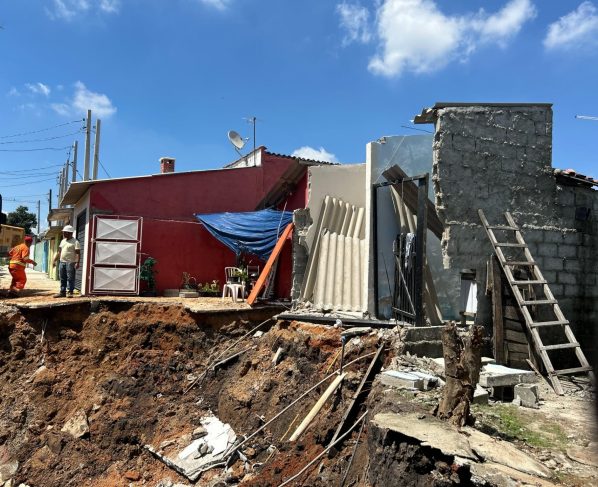 Parte das fachadas de três casas no Jardim Mourisco, em Taubaté, desabou, além de um poste de energia cair, após a cratera aberta na avenida Santana Alvissus Fernandes avançar com as chuvas deste sábado, 22. Os imóveis estavam vazios e interditados pela Defesa Civil. Não houve feridos.