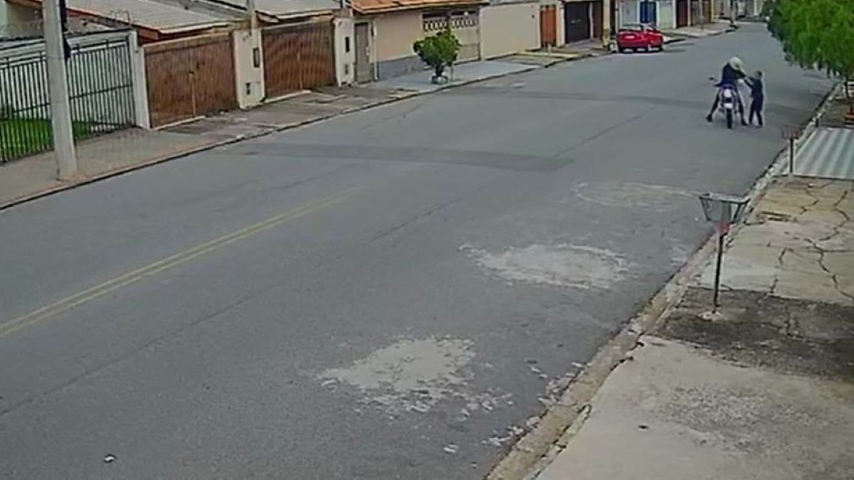 O crime, ocorrido na manhã de quinta-feira (10), na rua Paulo Setúbal, foi registrado por câmeras de segurança. As imagens mostram a idosa, de 83 anos, sendo abordada pelo homem, que pilotava uma moto.