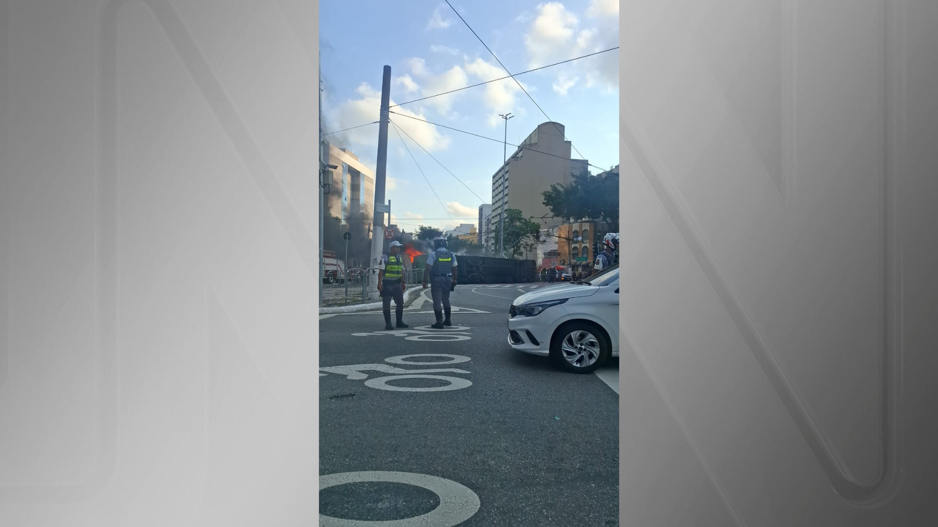 • Ônibus pega fogo após capotar no centro de São Paulo; gestante fica ferida