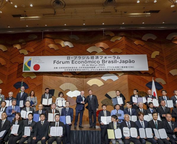 O presidente brasileiro lamentou a redução do comércio entre Brasil e Japão de US$ 17 bilhões, em 2011, para U$S 11 bilhões, em 2024. “Algo não andou bem na nossa relação e é preciso aprimorá-la”, comentou.