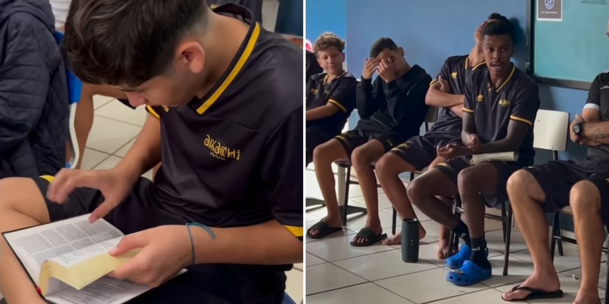 No entanto, dessa vez foi diferente. O professor Kaique Sousa aproveitou o período de Páscoa para explicar aos meninos o significado da celebração cristã.