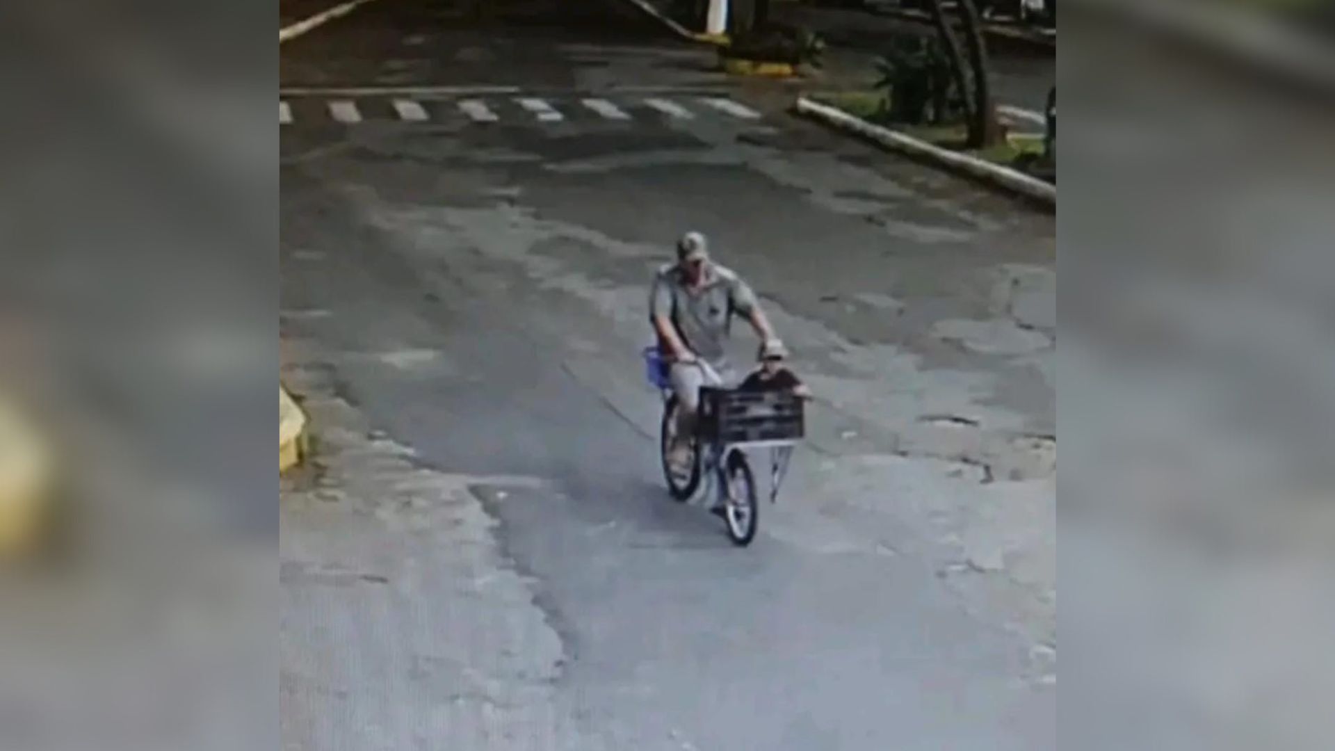 Uma câmera de segurança registrou o momento em que Tiago Ricardo Felber, 40 anos, transporta seu filho de 5 anos em uma bicicleta antes de jogá-lo de uma ponte no Rio Vacaraí, em São Gabriel (RS), na última terça-feira (25).